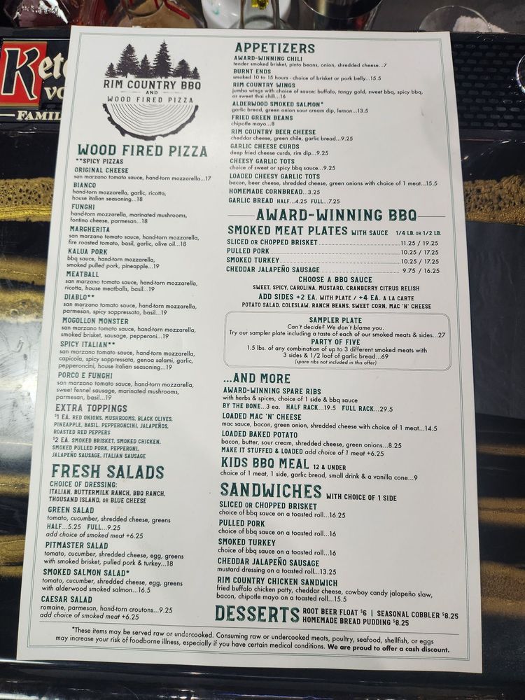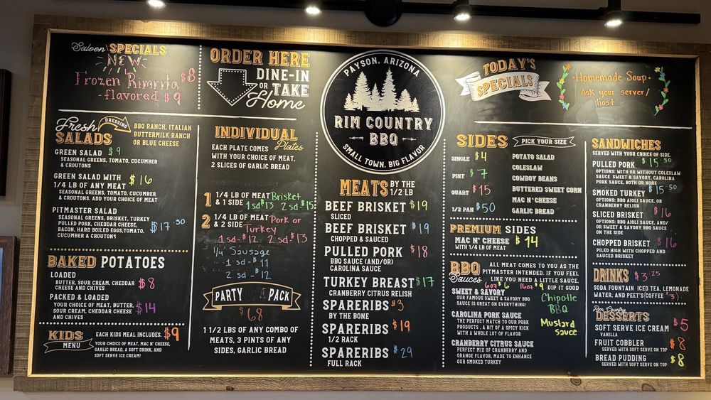 Welcome to Rim Country BBQ and Wood Fired Pizza, a culinary gem nestled in Payson, AZ. This inviting establishment specializes in BBQ and mouthwatering wood-fired pizzas, offering an unforgettable dining experience. The menu features a variety of delectable options, perfect for families and groups alike.